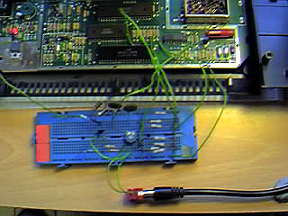 As I said earlier, I built this circuit on a breadboard so I could play with it. It's well worth doing - especially if your components don't exactly match that of the specified circuit and besides, a bit of tweaking never goes amiss. Be sure to double check your connections before powering up. I initially powered up the breadboard from a test bench PSU with short circuit protection and took a note of the current drain just to make sure I wasn't about to overload my Atari's power supply because of something silly like a short circuit.