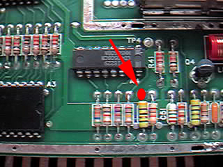 Unlike the other connections, the Chroma signal does need to go through this resistor so instead of connecting your wire to the junction between Pin 9 of the Stella chip and this resistor, connect it to the opposite end of the resistor (the end arrowed in the above picture).