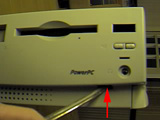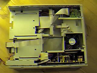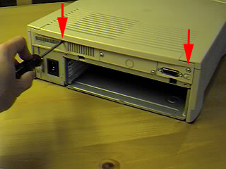 Why are you going through the challenge of taking one of these apart ? You either need to access the motherboard, storage drives or power supply. It's not necessary to disassemble everything (unless you want to access all three parts) so just follow the procedures relevant to your needs. The model pictured below is fitted with a network card. Other models may have a modem or no expansion card. This makes no difference to disassembly. If you want to know why your Performa 6200 isn't working any more, it's probably because the power supply has blown. Apple, in their wisdom, fitted a vent on the top of the case - right where you would dump a monitor! A blocked vent would cause the PSU to overheat and fail.
