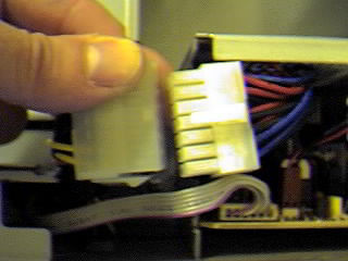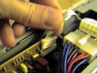 4. Pull the top lid forwards to remove it. Beware of the floppy cable which runs through a clip on the underside.