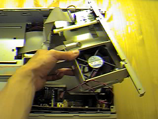 10. Lift out the upper rear section housing the fan and monitor connector.