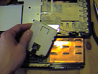 2. Lever out the keyboard from the bottom. Do it gently, it's connected by fragile flexi-ribbons.
