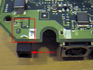 13. Close up of the underside of the motherboard showing the power socket solder connections which break down. These need to be renewed to bring your PowerBook back to life!