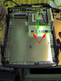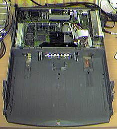 3. Congratulations. You now have access to the docking bay, Video RAM slot (1x 30 PIN SIMM) and I/O board holding the SCSI and NuBus controllers. The model pictured below also has an optional DAA adaptor fitted to connect it to an Apple Express Modem and a 68882 Maths co-processor for that extra zing when docked!