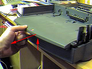 5. From under the front lip of the unit, push up and ease out the upper section (I found the best way of doing this was to turn it upside down and let gravity help).